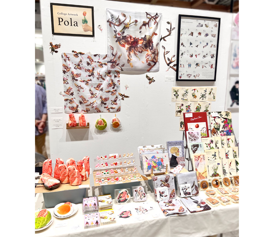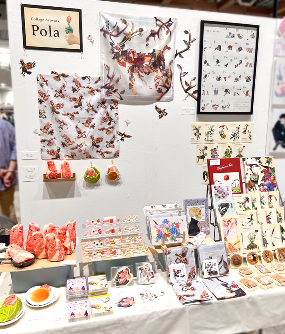 コロナの影響で2年ほど参加していなかったデザインフェスタに久しぶりに参加しました。 新作として「Karetemo」のコラージュをハンカチに、おにくさんシリーズも新しく人形を作りました。 本当に久しぶりのイベント参加で不安もありましたが、 SNSを見てきてくださった方や、前から作品を好きでいてくれるお客様、知り合いの作家さんなど、直接お会いして話すことができ、 とても楽しく良い時間を過ごすことができました。 次回、秋のデザインフェスタも参加できればと思っています!